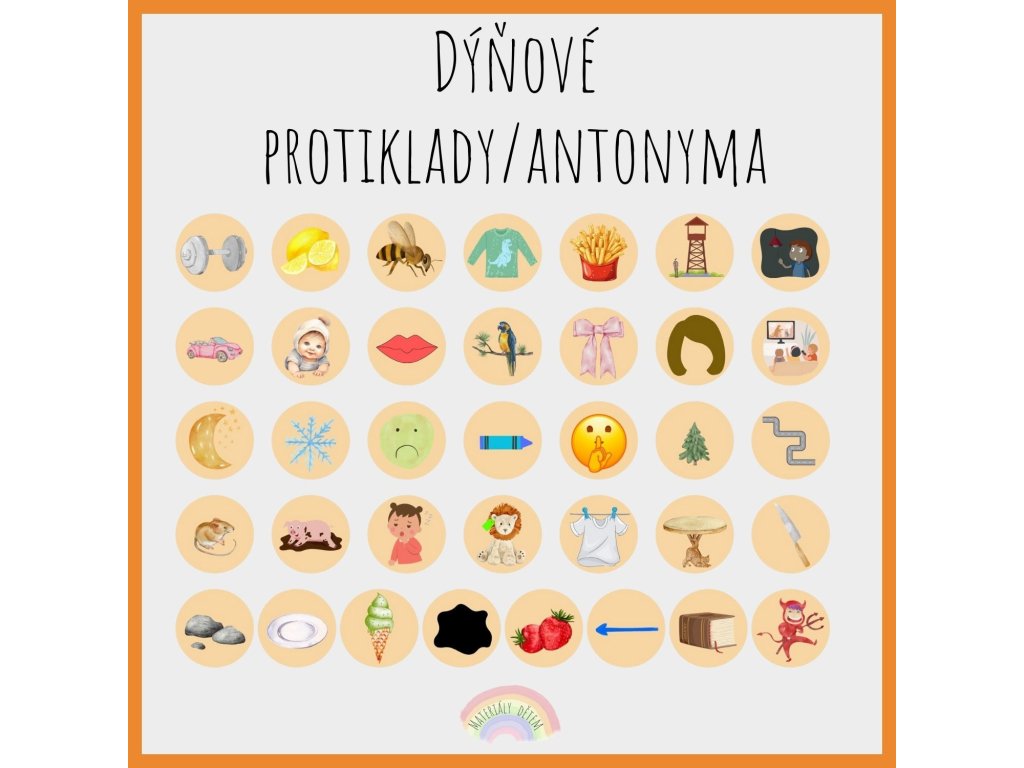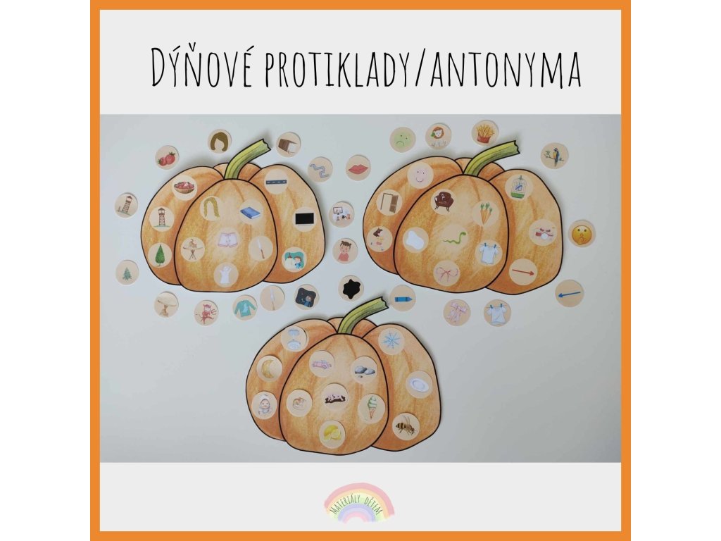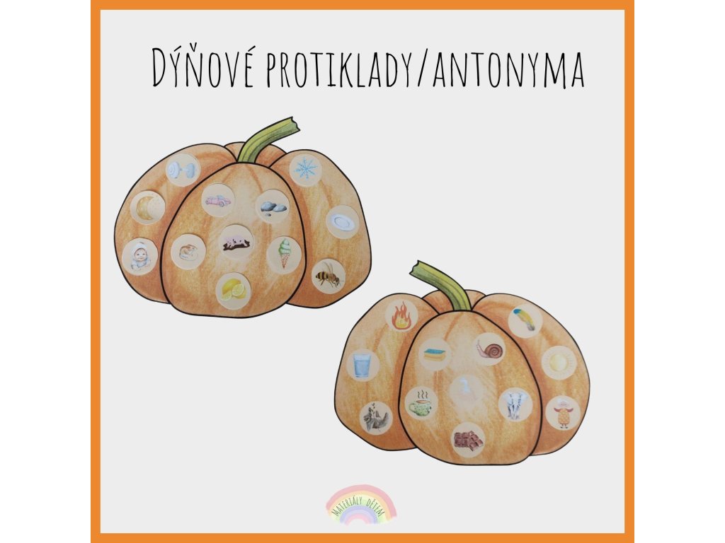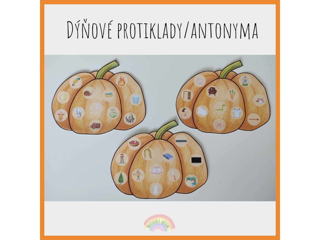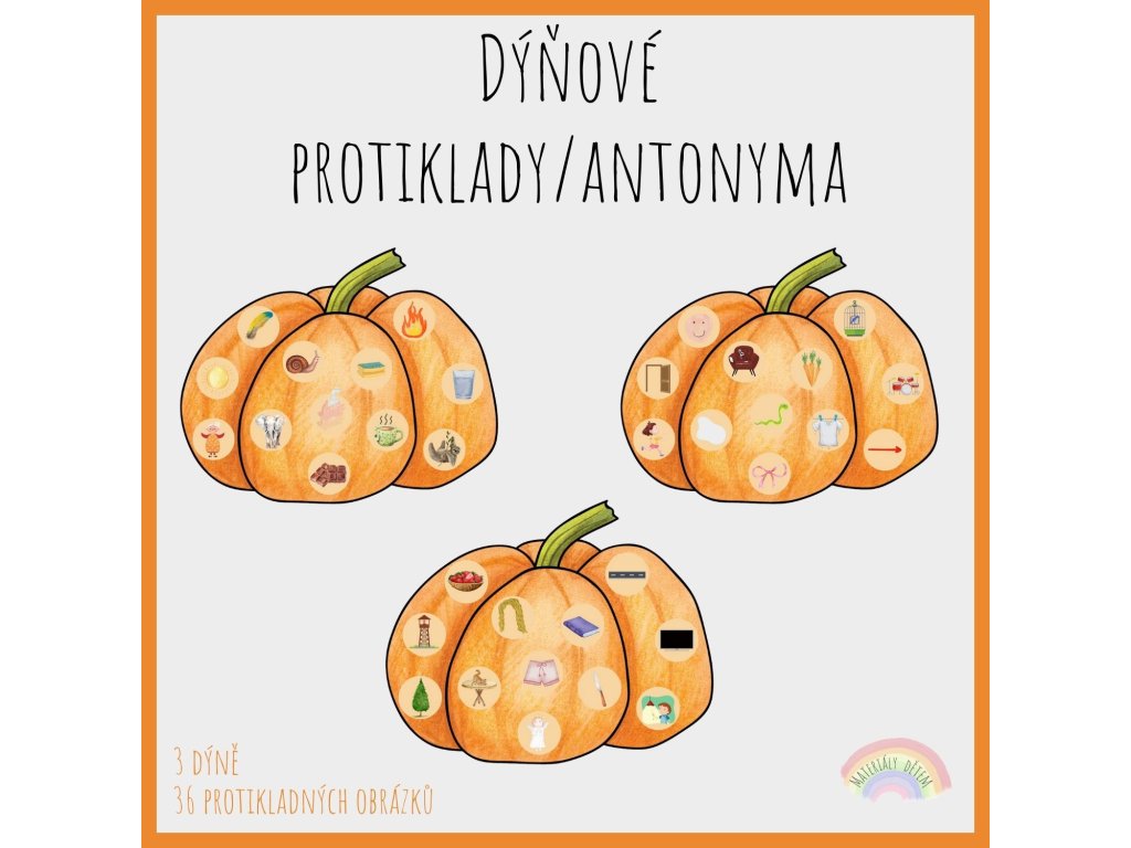Soubor obsahuje 3 dýně (A4), ve kterých se schovává dohromady 36 obrázků. Součástí souboru je 36 koleček protikladných obrázků, jejichž opaky jsou v dýních. Poslední dvě strany obsahují malé kontrolní dýně s řešením.