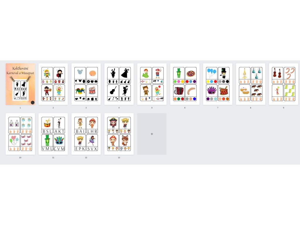 Aktivita obsahuje 48 hracích kartiček na téma Karneval a Masopust. Kolíčkování je zaměřené na: