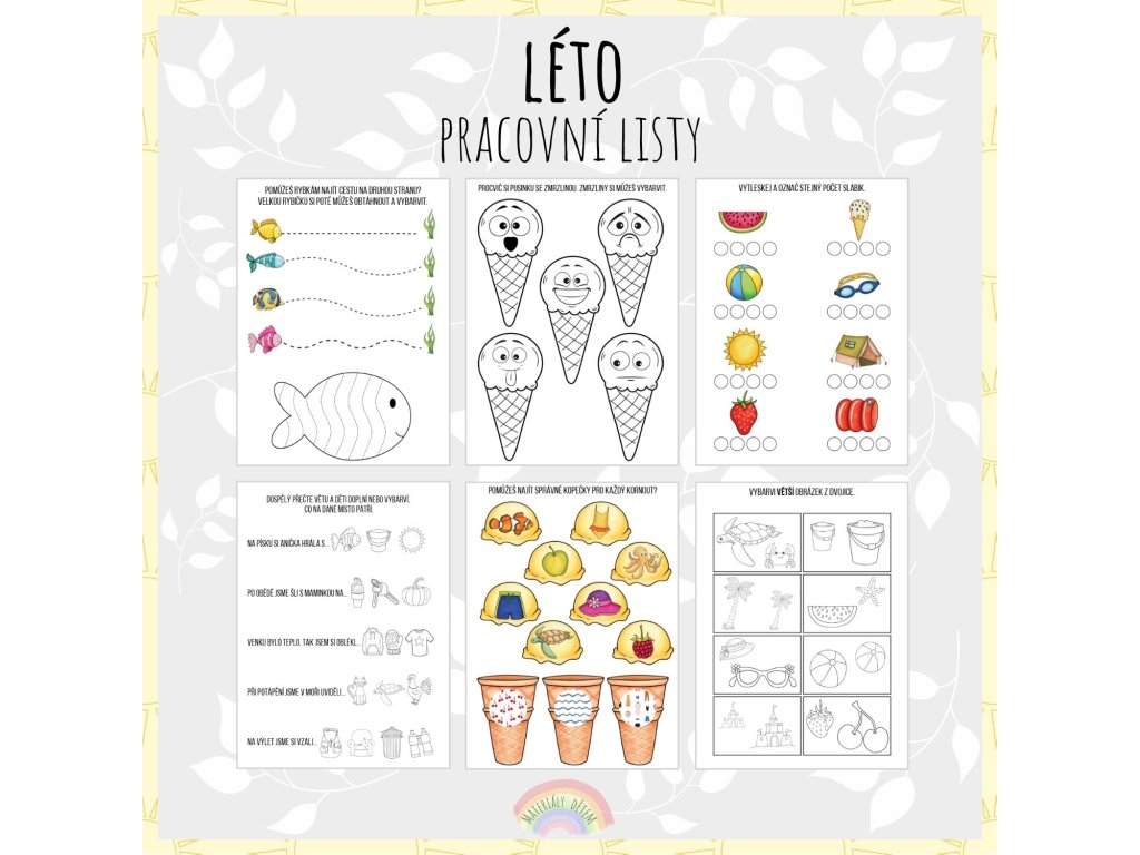Listy je možné využít při individuální i skupinové práci, jako součást tematického celku „Léto“ nebo jako doplňkový materiál pro rozvoj školní připravenosti.
