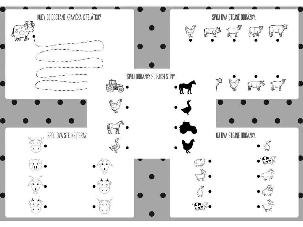 PDF soubor Na statku (Hospodářská zvířátka) obsahuje černobílé pracovní listy se zaměřením na: