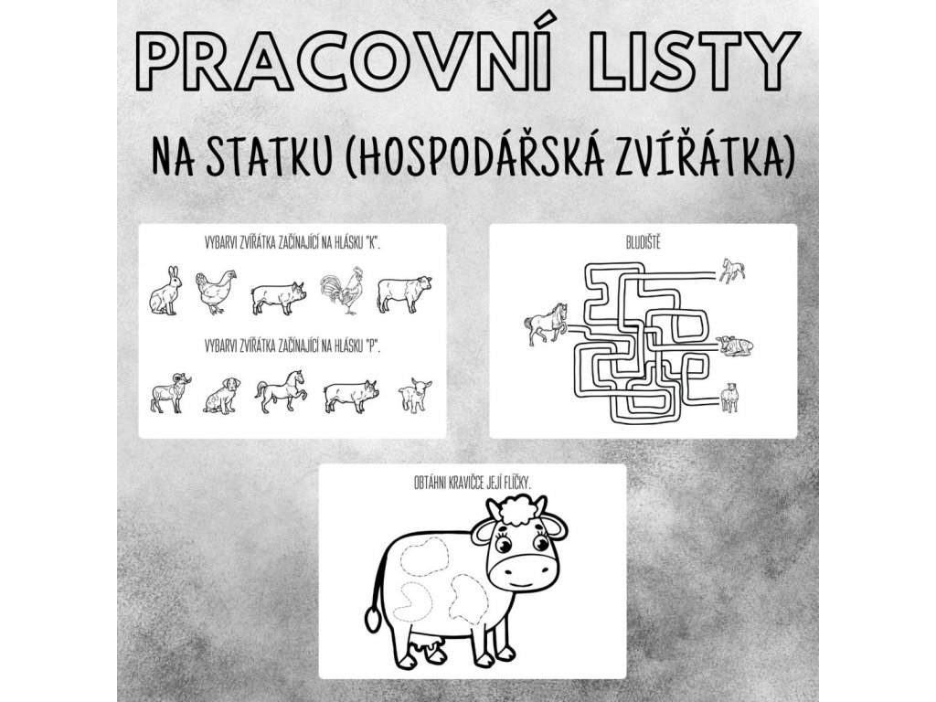 Soubor Na statku (Hospodářská zvířátka) obsahuje černobílé pracovní listy. Pracovní listy jsou orientované na šířku.