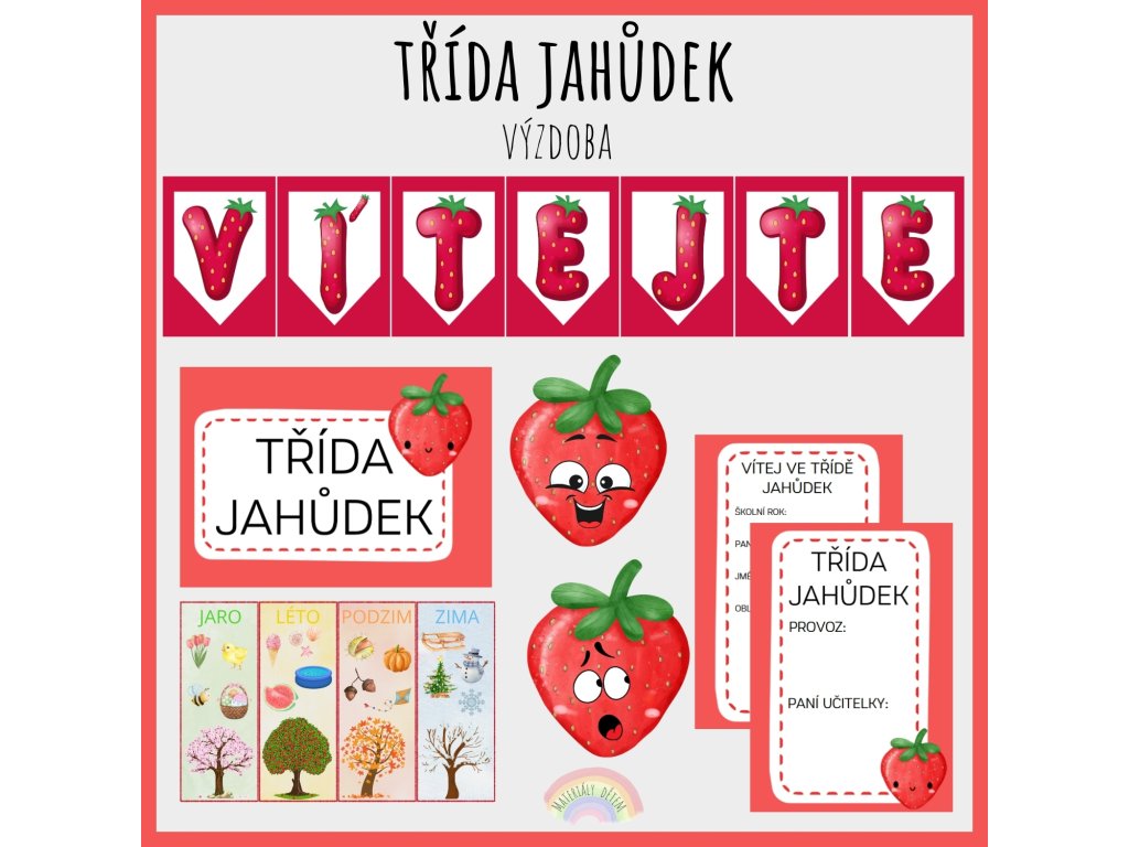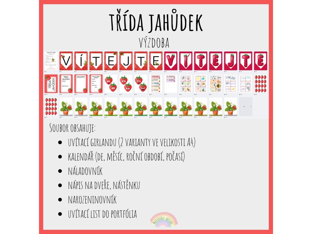 Materiál můžete využít ve třídě/na chodbě. U narozeninovníku si můžete vybrat, jestli jahůdly označíte fotkou/značkou/jménem dětí.